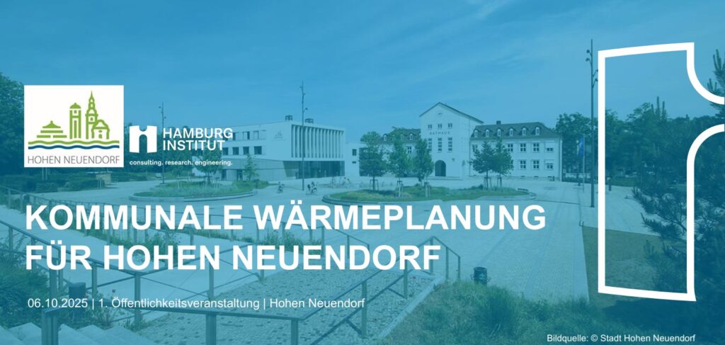 Mit der kommunalen Wärmeplanung stellt die Stadt Hohen Neuendorf die Weichen für eine klimafreundliche, sichere und bezahlbare Wärmeversorgung der Zukunft. Im Auftrag der Stadt führt HIC CONSULTING (vormals Hamburg Institut) eine umfassende Bestandsaufnahme und Analyse des gesamten Stadtgebiets durch, um die Potenziale erneuerbarer Energien und effizienter Wärmelösungen zu ermitteln. Die daraus entwickelte Wärmewendestrategie wird konkrete Wege aufzeigen, wie Hohen Neuendorf bis spätestens 2045 klimaneutral heizen kann – unter Einbindung von Verwaltung, Politik, Wirtschaft und der Bürgerinnen und Bürger.